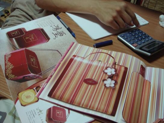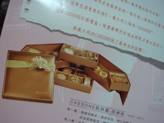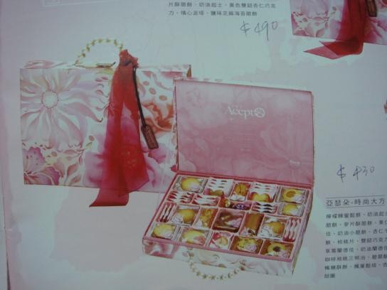 挑喜餅是婚禮的重點之一。在生日餐後,我們冒著風雨去板橋的喜餅街挑喜餅。目錄真是不能盡信啊...這個箱子看起來很讚,可是實品卻看起來不怎麼樣。